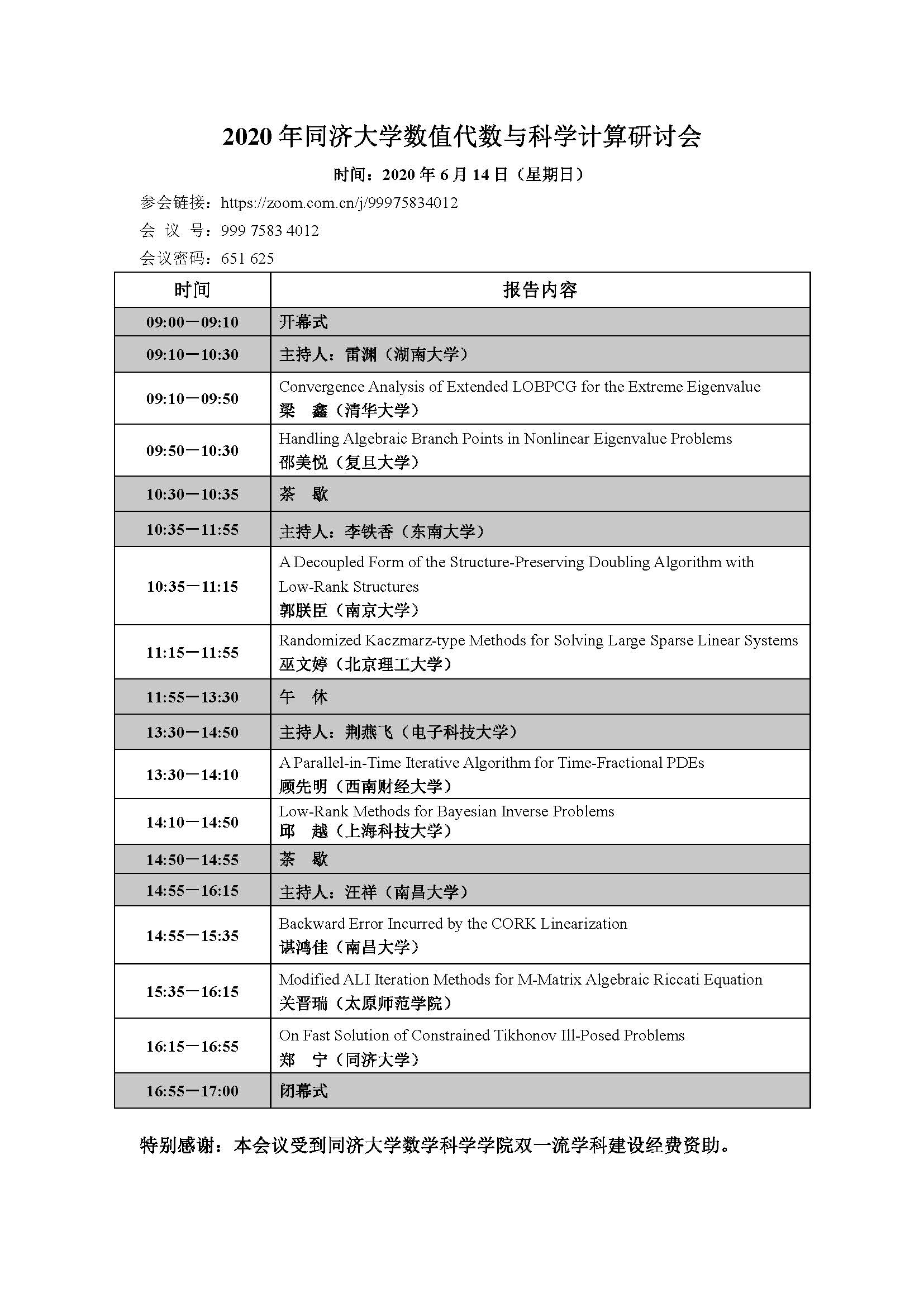 2020年新葡的京集团35222vip数值代数与科学计算研讨会