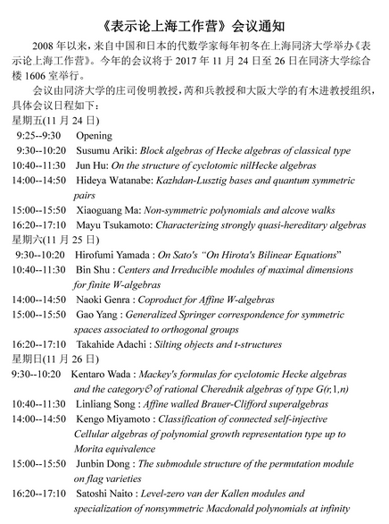 《表示论上海工作营》会议通知