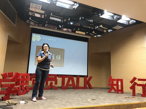 教工第一党支部党员兰辉老师则结合自己担任班主任的经历,告诉同学们要“不忘初心,脚踏实地”。兰老师从自己的入党时间开始讲起,谈论何为初心;讲述自己从学生工作中探索到作为一名党员的初心,并且学会从学生角度思考问题、发现问题、解决问题;最后兰老师告诉大家要脚踏实地,“一路走过,留下的脚印,都是收获”。