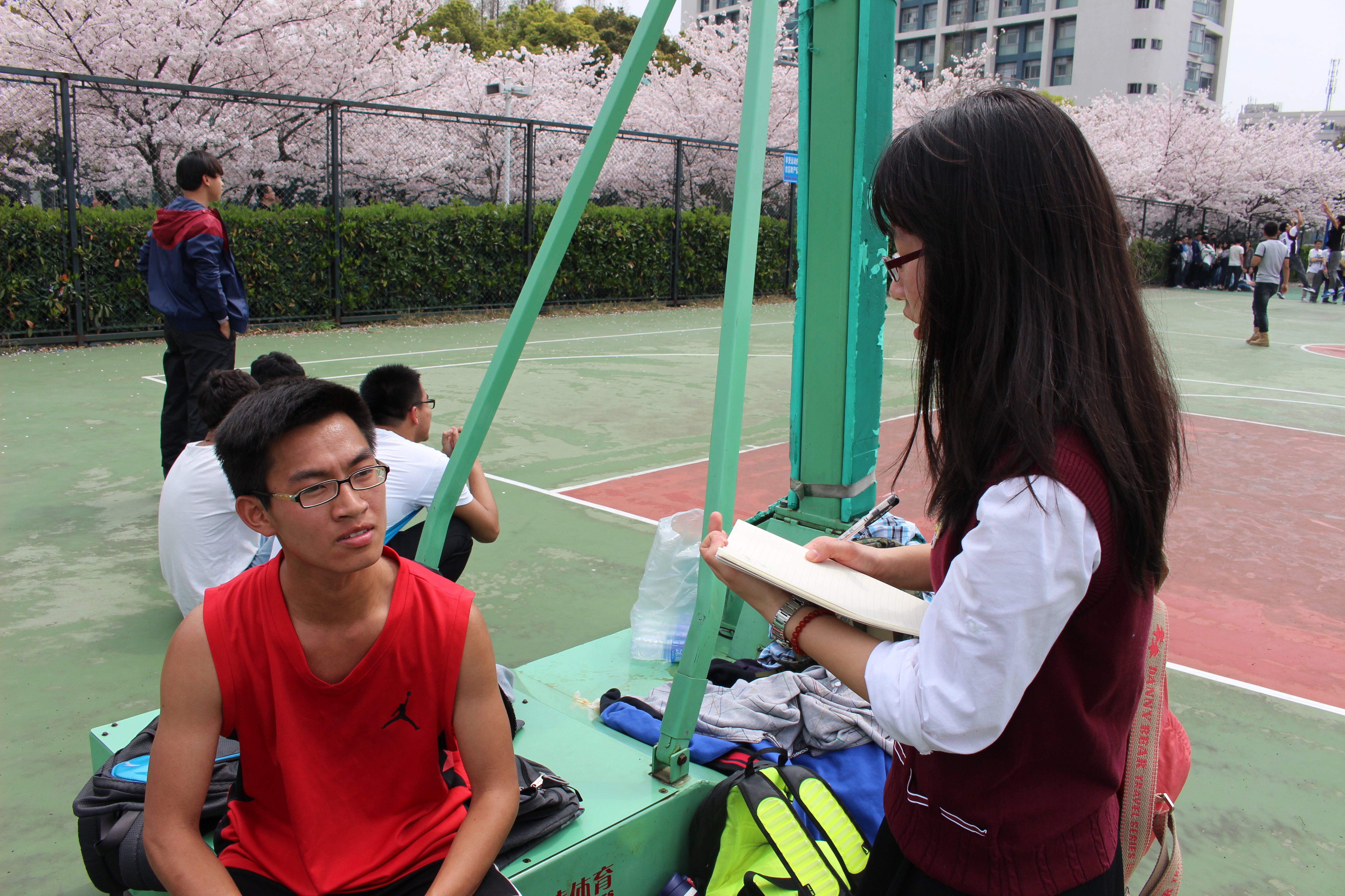 图:14级研究生体育委员吕碧凯同学正在接受中心记者陈晓悦采访
