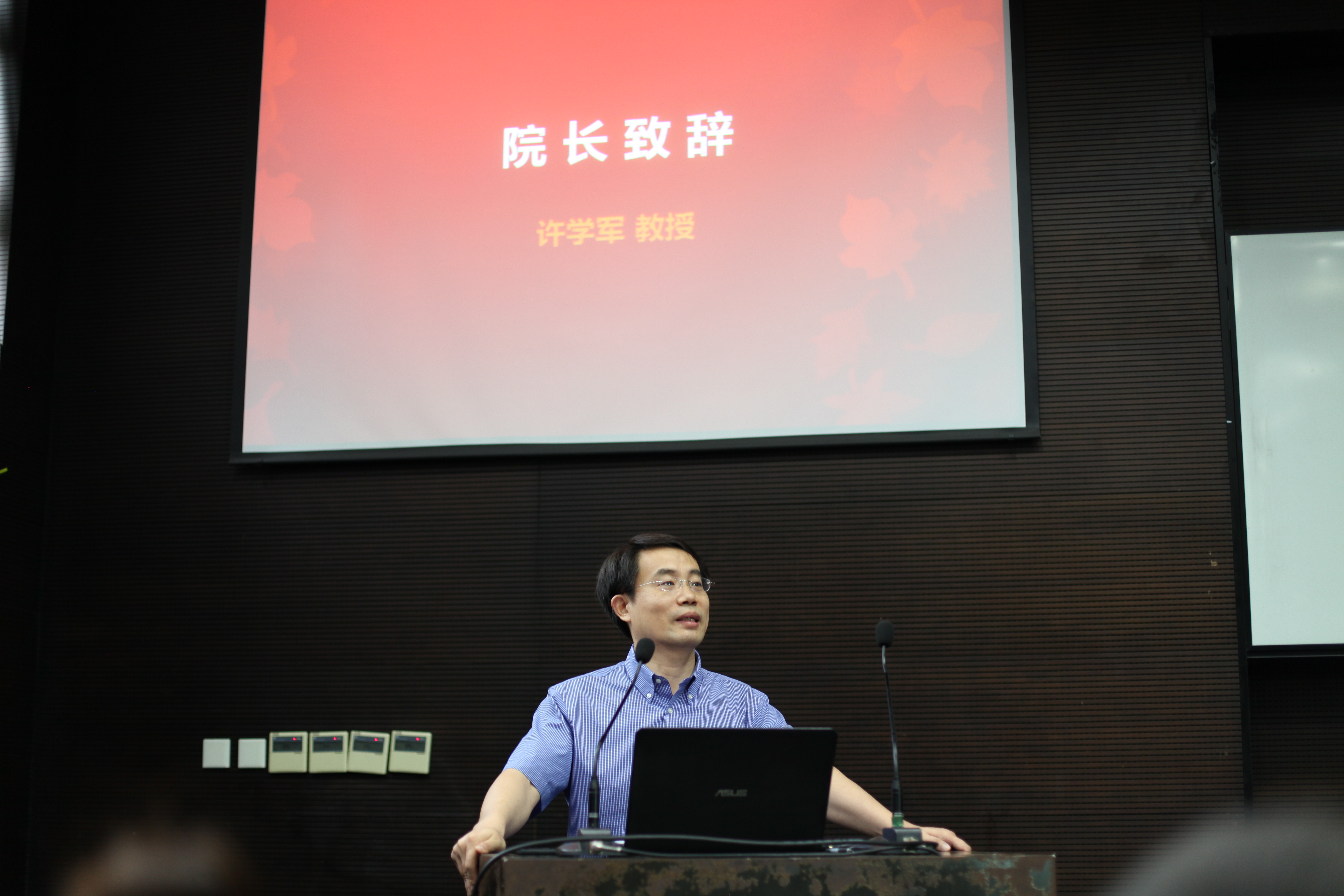 院长许学军教授代表学院致欢迎辞。他首先对所有新生家长给予学院的支持与信任表示感谢。他强调,无论是从世界科研团队的发展现状还是从学科本身的特点来看,数学都是一门非常重要的学科。其次,许院长指出选择新葡的京集团35222vip是明智而英明的决定,他分别从师资力量、学科建设、辅导员队伍发展等方面简要介绍了学院的人才培养亮点。最后,许院长指出学好数学不容易,强调了扎实基础课程学习的重要性,提醒家长时刻关心孩子的学习状态。