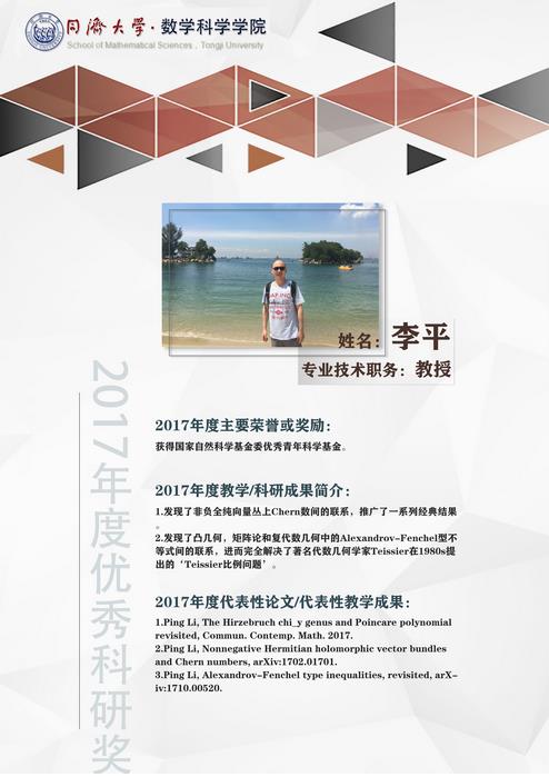 【2017年度新葡的京集团35222vip优秀科研奖、教学奖获奖人员简介】