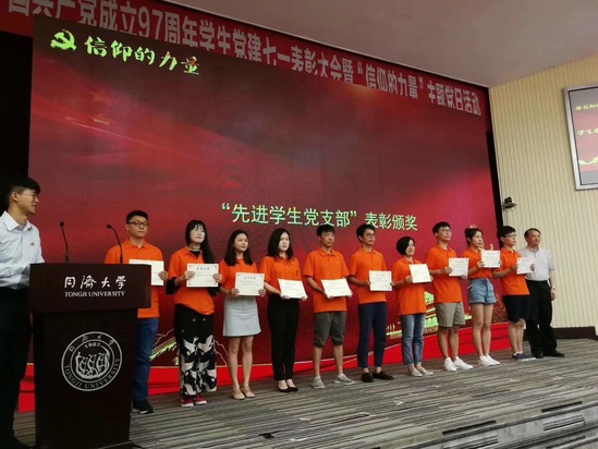 优秀学生党支部书记代表土木工程学院博士生李昂带领全体参会党员重温入党誓词。会上举行了“卓越·领航”暑期红色大课堂学生党员暑期实践团队授旗仪式,徐建平为井冈山实践团、延安实践团的带队老师授旗。今年暑假,将有新一批学生党员骨干即将赴井冈山、延安等革命圣地,深入学习红色革命历史,深度体验红色革命文化。