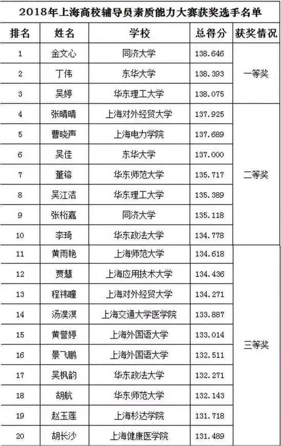 由中共上海市教育卫生工作委员会、上海市教育委员会主办,东华大学承办的2018年上海高校辅导员素质能力大赛于2018年11月28日圆满结束,本次大赛共有来自上海的51所高校、100名选手参加比赛。经过紧张激烈的角逐,新葡的京辅导员金文心以总分第一荣获一等奖,交通运输工程学院辅导员张桁嘉获得二等奖。
