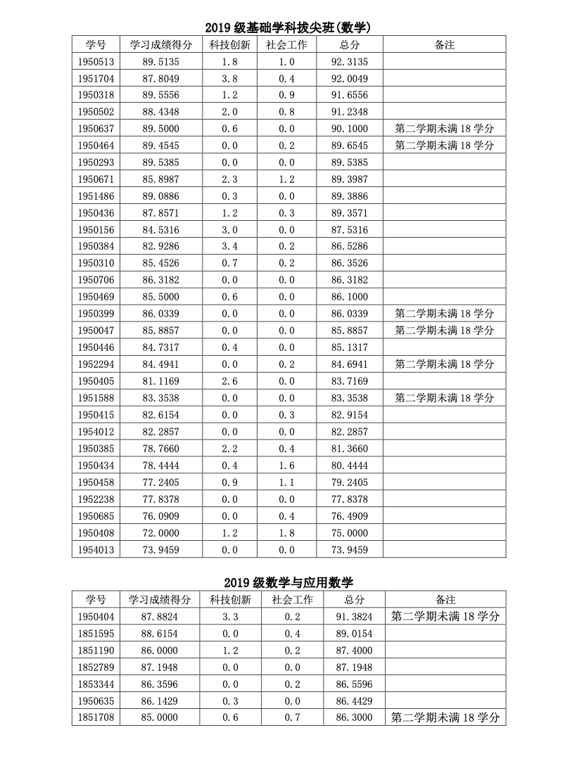 根据同学们递交的材料,现将奖学金初评分数排名公示如下。