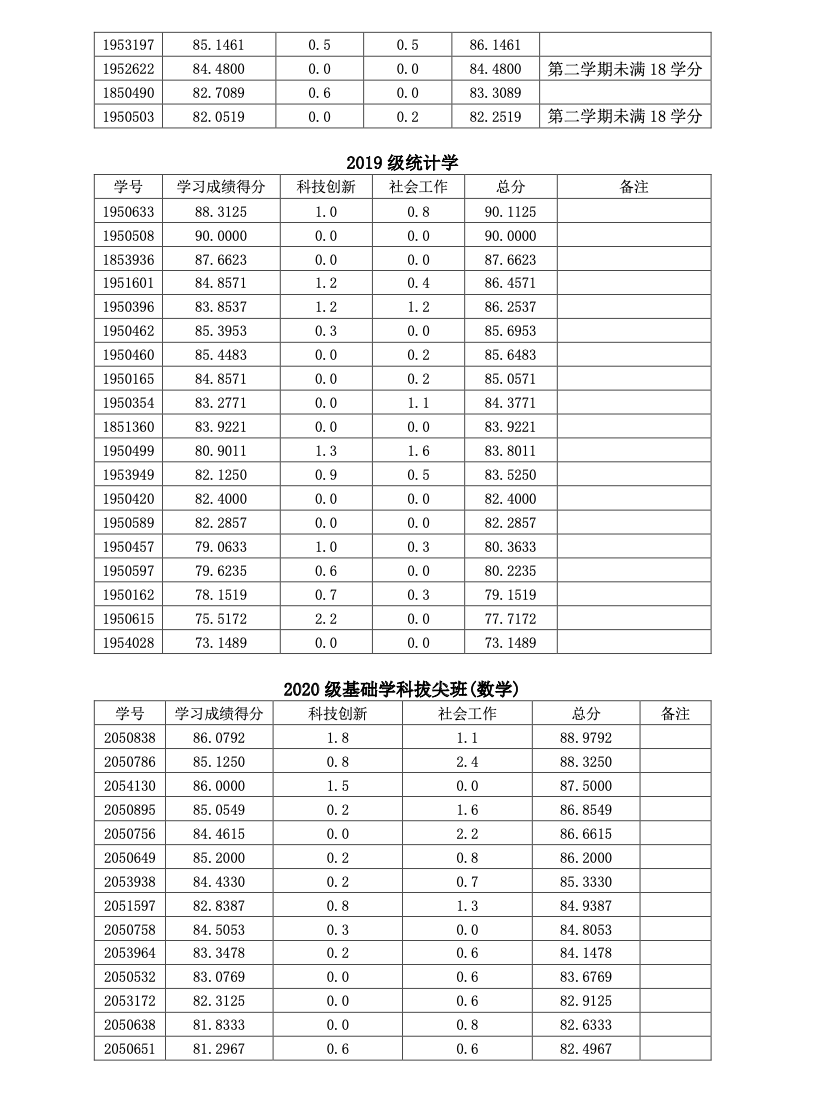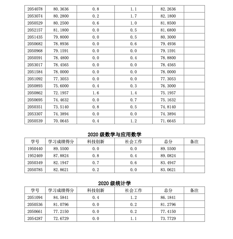 2021-2022学年本科生奖学金申请者初评分数公示(二)