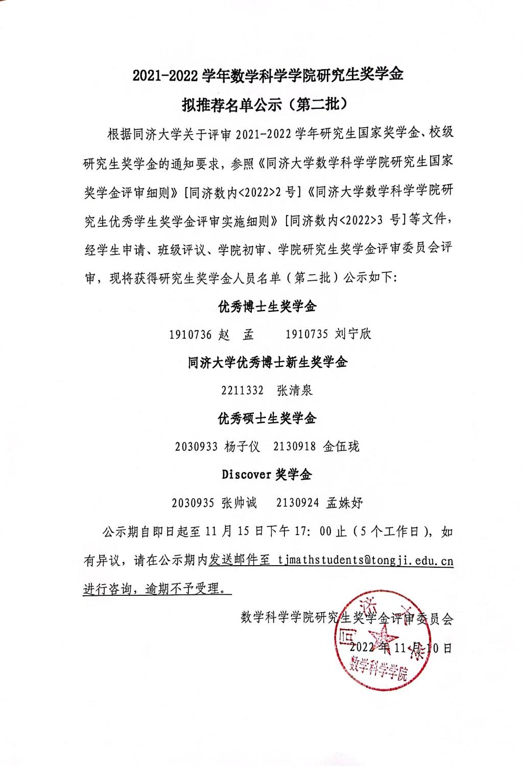 2021-2022学年新葡的京集团35222vip研究生国家奖学金拟推荐名单(第二批)