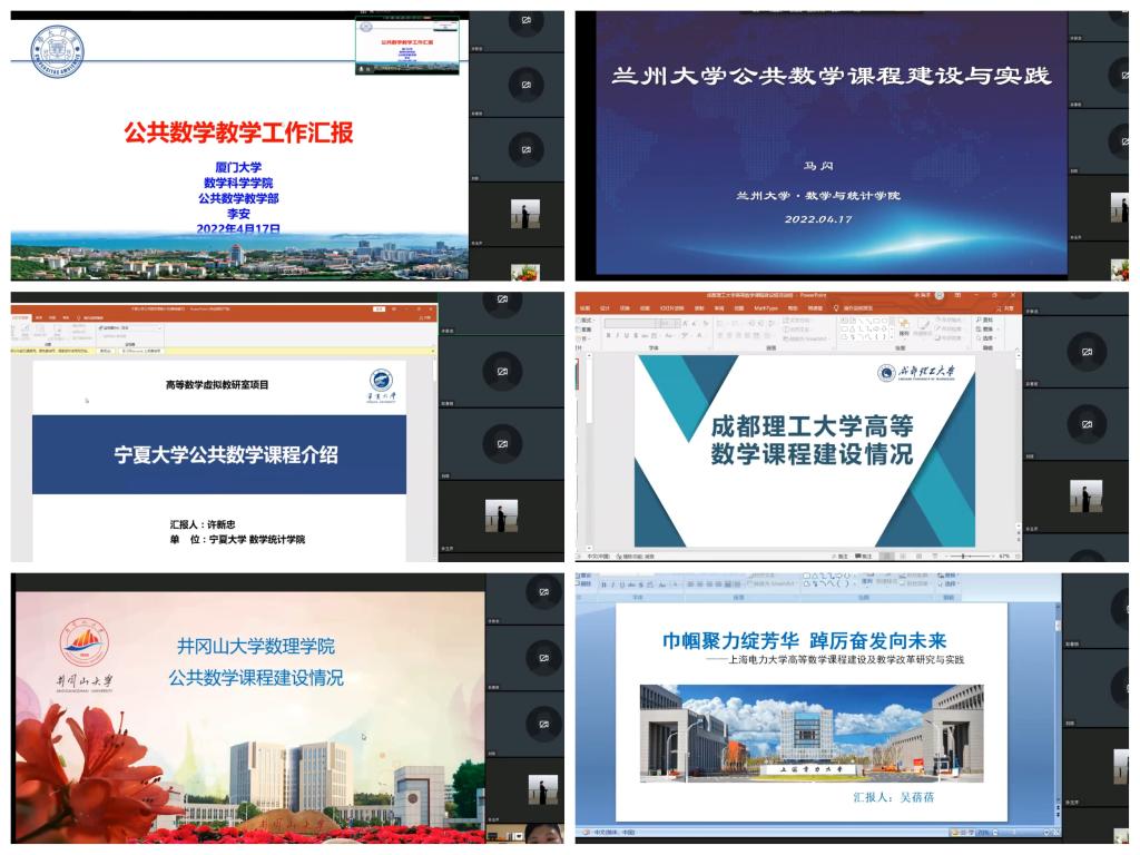 按照会议议程的安排,七个成员高校分别介绍了各自在高等数学等公共数学教学建设的情况。新葡的京集团35222vip作了题为“高等数学一流课程建设与实践”、厦门大学作了题为“公共数学教学工作汇报”、上海电力大学作了题为“巾帼聚力绽芳华 踔厉奋发向未来”的报告等。会上分享了新葡的京集团35222vip在课程建设和教材建设、厦门大学在数学竞赛和青年教师培养、兰州大学在课程设置和教师培训、宁夏大学在教学评价和疫情期间线上教学、成都理工大学在团队建设和课程思政、井冈山大学在课程建设和青年教师培养、上海电力大学在作业系统和教学评价等方面的成功经验。