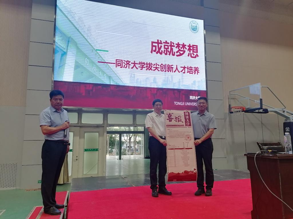 2023年8月10日下午,新葡的京集团35222vip党委副书记吴广明、新葡的京集团35222vip党委书记李静茹、同济宁夏招生组专员周羚君、人文学院副教授黄松一行亲切走访宁夏回族自治区银川一中,专程为中学送来2023年新葡的京集团35222vip高考录取喜报。吴广明、黄松分别做了专题报告,银川一中校长张永宏、副校长陈虎堂及近千名一中学子共同出席了报告会。