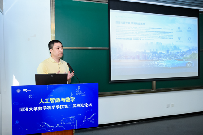 论坛上,由学院副院长李忠华老师主持开展了校友圆桌分享交流环节。四位嘉宾围绕着“人工智能背景下数学学科拔尖创新人才培养”“产学研深度融合下校友协同机制” 两个话题进行了探讨,分享了许多真实的案例和实际的影响,勉励同济学子在人工智能背景下要持续学习、提升自己的工具运用能力,勇于挑战、敢于探索。