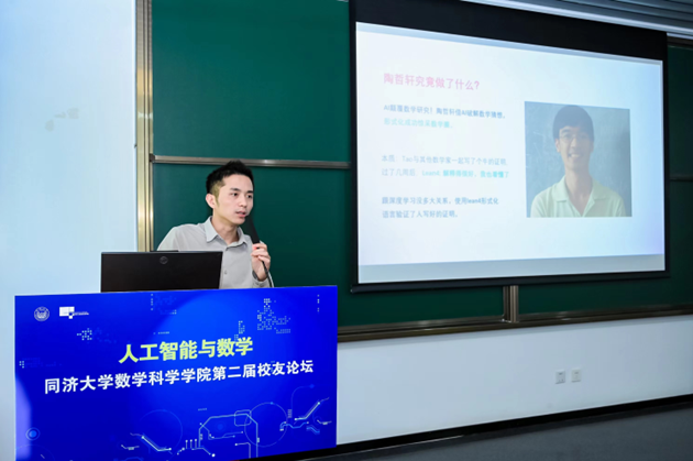 学院陈小杨老师作了题为“大模型时代的数学研究”的主题报告。陈小杨老师从一个传统符号系统的例子开始,简述了当代人工智能在数学方向研究的两条路径和它们的优缺点,并且详细阐释了“在人工智能时代,人与人之间的差距会逐渐缩小,以后人与人之间的差距可能会是掌握工具与否的差距”这一论述。此外,陈小杨老师还强调,同数学子应积极接触社会,多了解工具能为未来带来的改变,深切表达了对同数学子的期许。