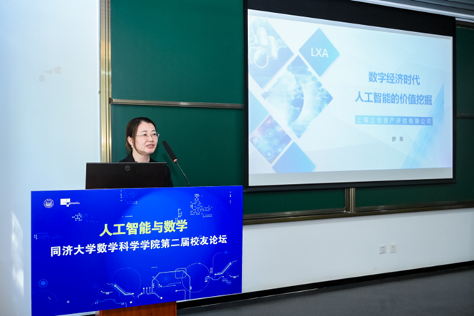 舒英校友作了主题为“数字经济时代人工智能的价值挖掘”的报告。她向与会师生介绍了数字经济时代的“三要素”——数据、算法和算力,以及数字经济的“四化框架”——数字产业化、产业数字化、数字化治理和数据价值化。她还从专业角度详细地分析了在数字经济时代的大背景下,人工智能领域的技术手段在上述框架下能够带来的效益价值,并对中国人工智能的未来发展表现了美好的期冀。