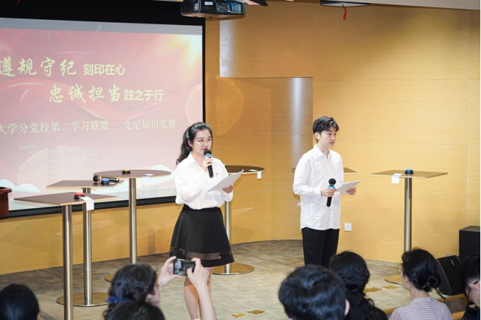 为学习贯彻习近平新时代中国特色社会主义思想和习近平总书记关于党纪学习教育的重要讲话和重要指示精神,推进党纪学习教育走深走实,在中国共产党成立103周年之际,新葡的京集团35222vip分党校第二学习联盟在6月27日于德文图书馆二楼报告厅开展“遵规守纪刻印在心 忠诚担当践之于行” 党纪知识竞赛。新葡的京集团35222vip党委组织部副部长杨秋华,新葡的京集团35222vip党委学生工作部副部长、学生处副处长王小莉,新葡的京集团35222vip党委书记李静茹、党委副书记方璐,生命科学学院党委副书记陈永强,物理科学与工程学院党委副书记殷娣娣,第二学习联盟各学院专职组织员、师生党员代表出席活动。