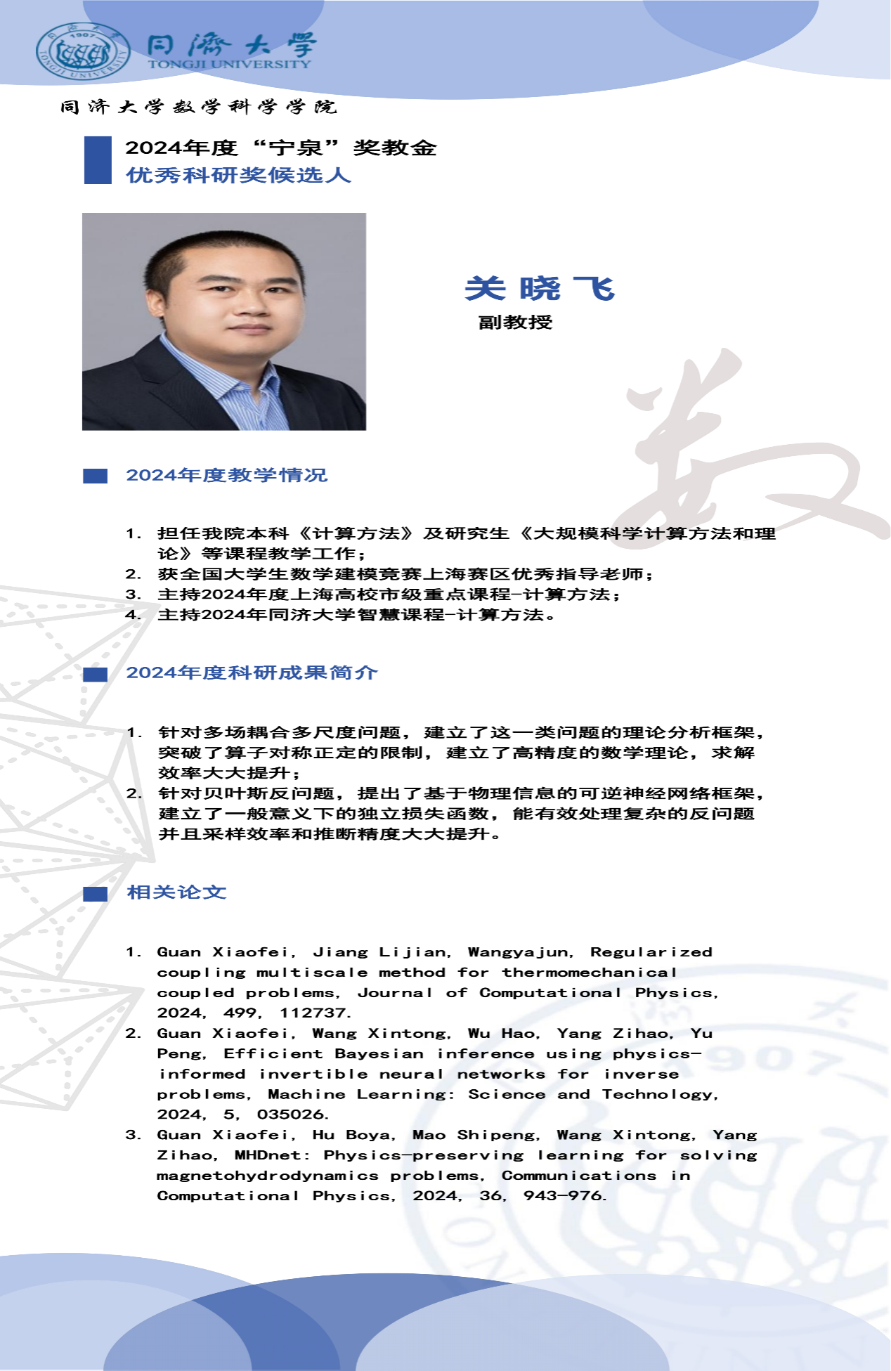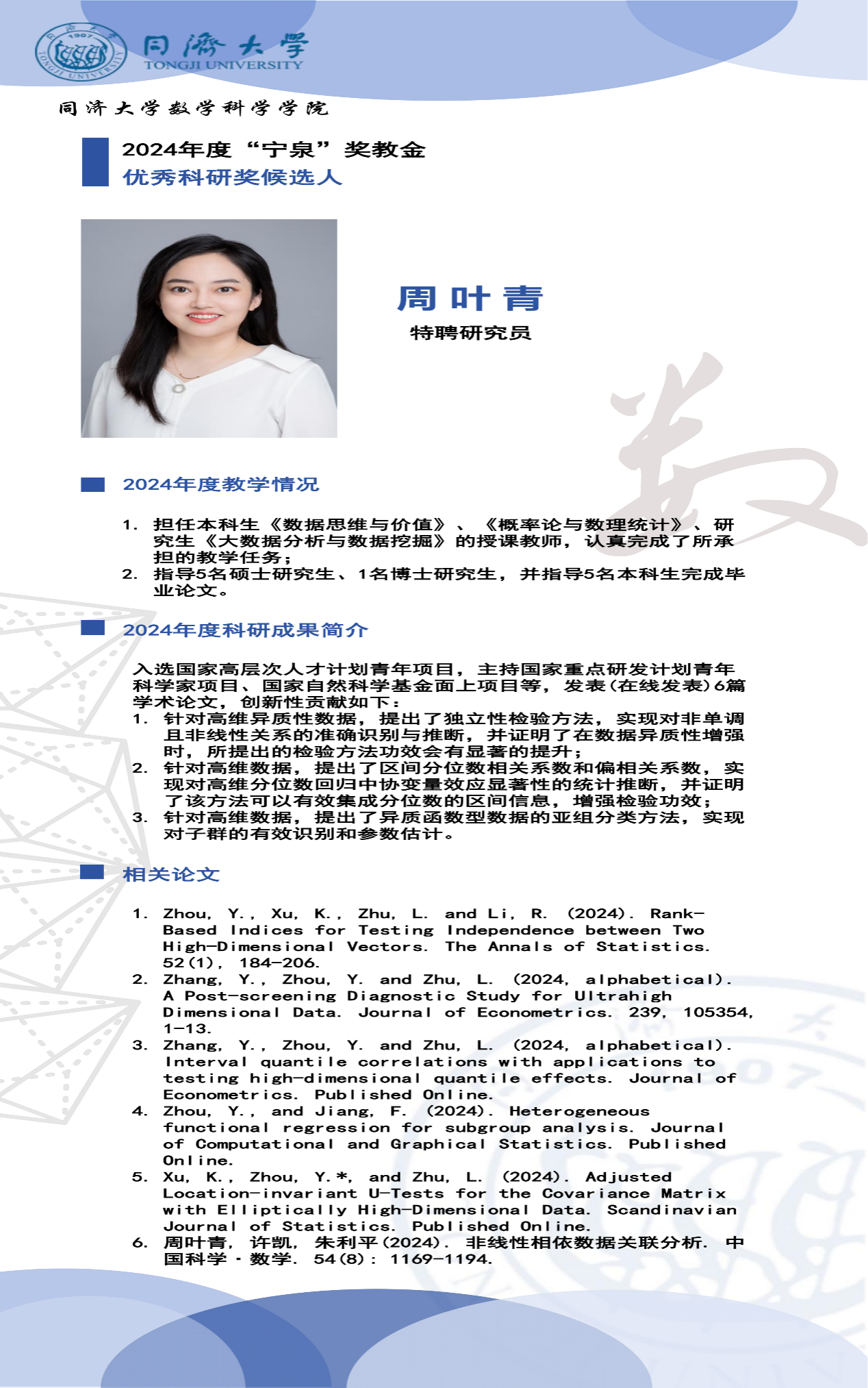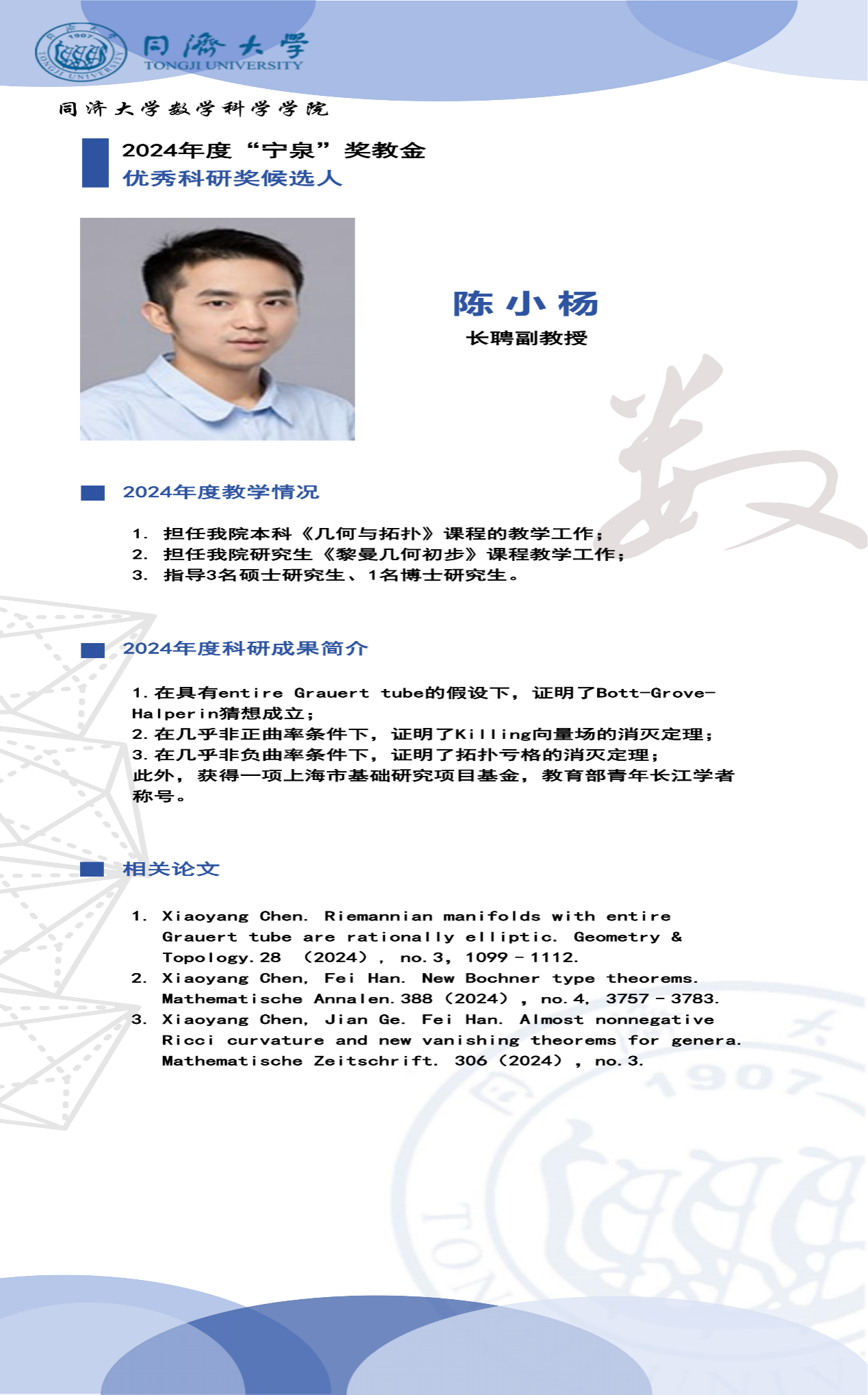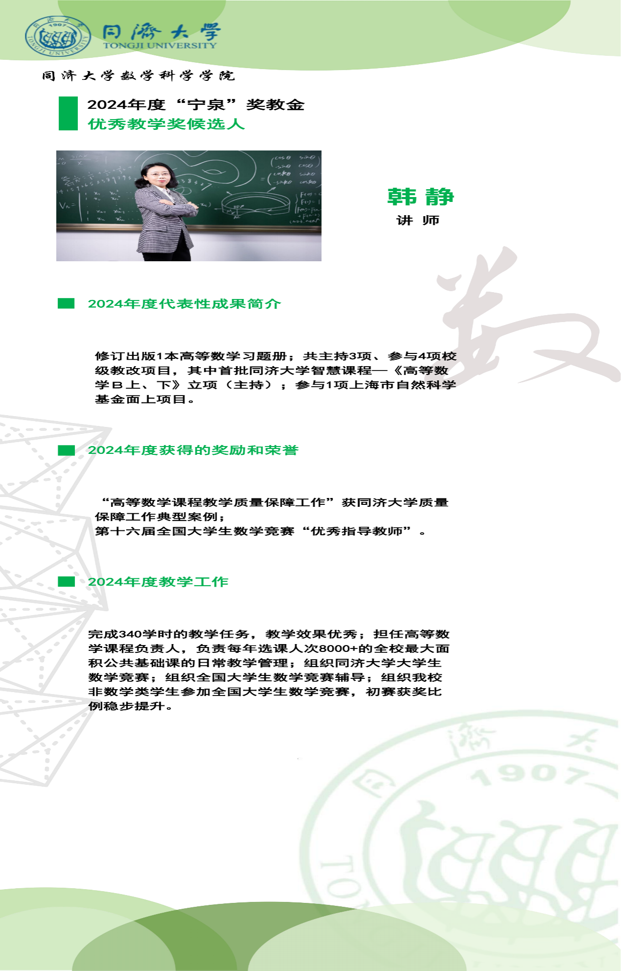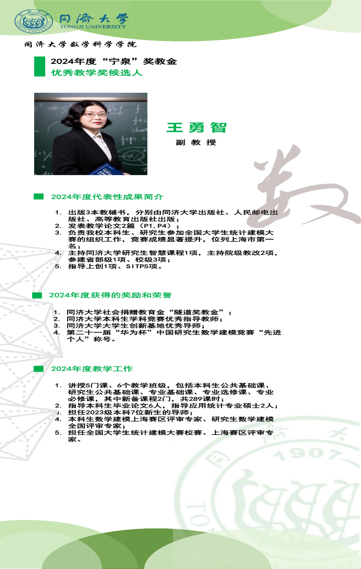【2024年度新葡的京集团35222vip“宁泉”奖教金学院优秀奖获奖人员简介】