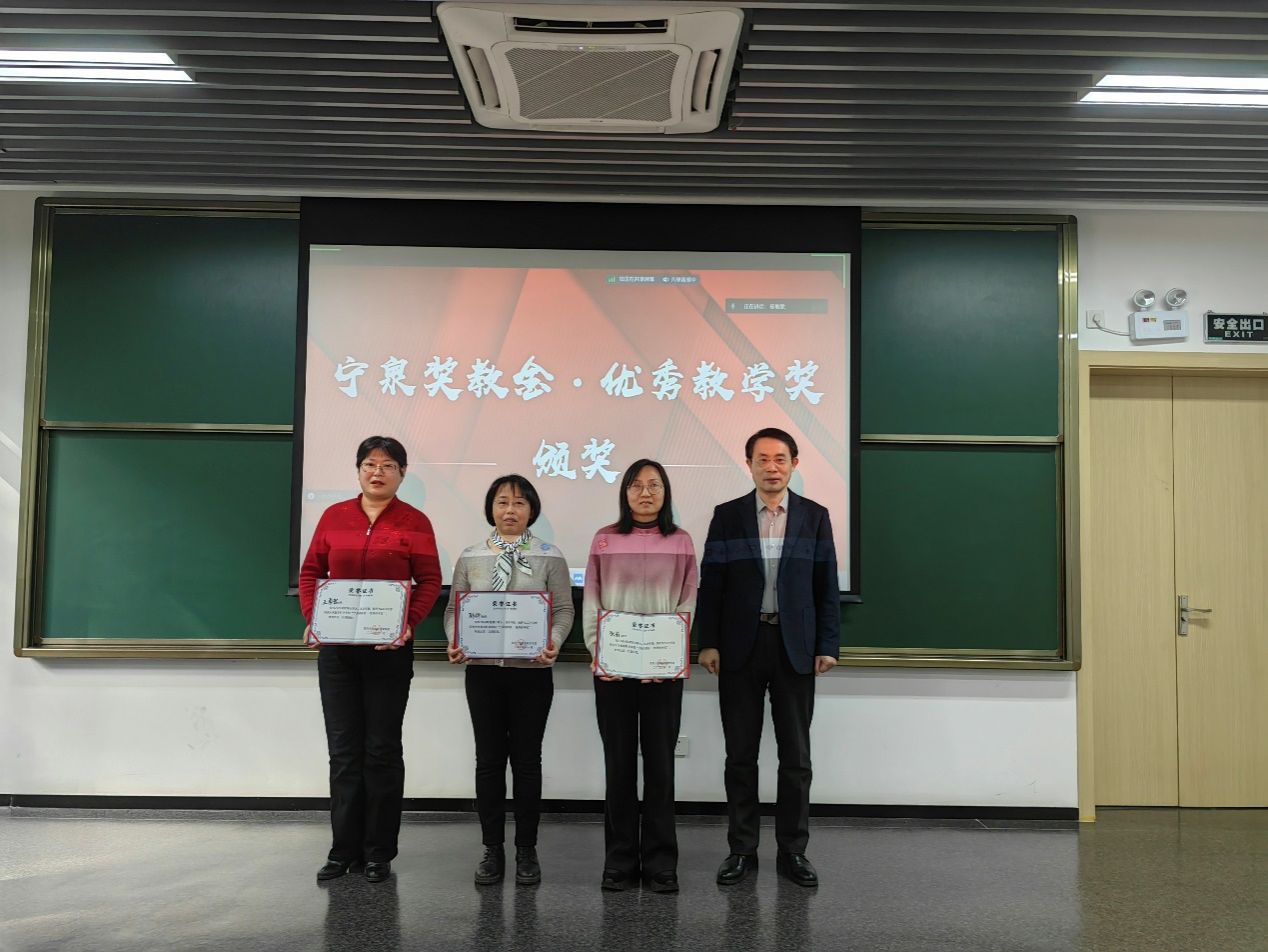 许学军副校长为“宁泉”奖教金获奖者颁发证书。李忠华副院长和余斌副院长为省部级及以上获奖教师颁奖纪念证书。