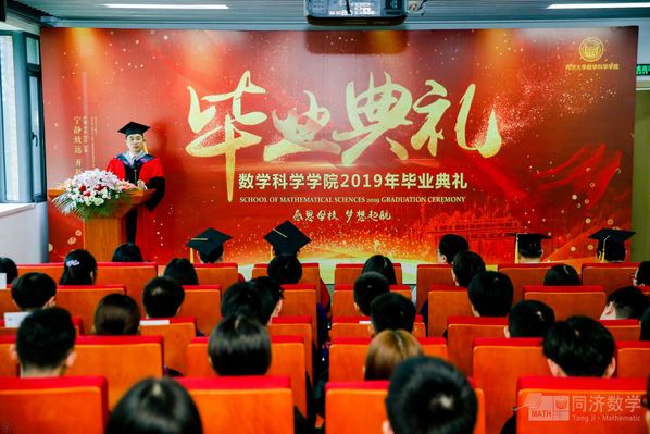 许学军院长代表学院向圆满完成学业的2019届全体毕业生表示热烈祝贺,他引用列夫托尔斯泰的一句话——选择你所喜欢的,爱你所选择的,表达了对于入学之初大家选择“数学”、选择同济数院的欣喜之情,相信每一位毕业生在今天都已深深地爱上了数学、爱上了数院。他勉励学子们在今后的人生道路中,一是要常怀感恩之心,不忘亲友的支持、师长的教诲,感恩所有给予我们帮助的人;二是要注重细节,把握成功的关键。“天下难事必作于易;天下大事必作于细”,只有肯做小事,才能成就大事,只有注重细节才能达至完美;三是要脚踏实地、永葆恒心。华人数学家张益唐凭借坚持不懈的精神,在长期艰苦的环境下完成了孪生素数猜想的证明。坚忍不拔、持之以恒才能使得偶然成为必然,帮助我们到达成功的彼岸。