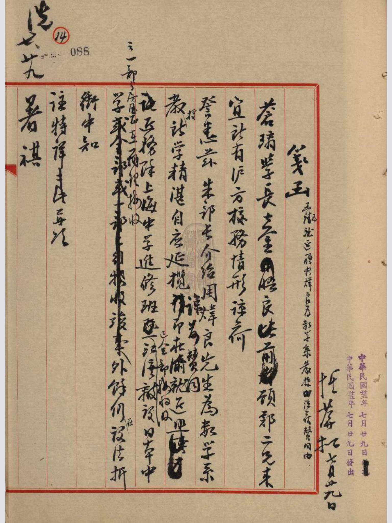 (聘周炜良先生为数学系教授笺函内页留存 新葡的京集团35222vip档案馆藏)