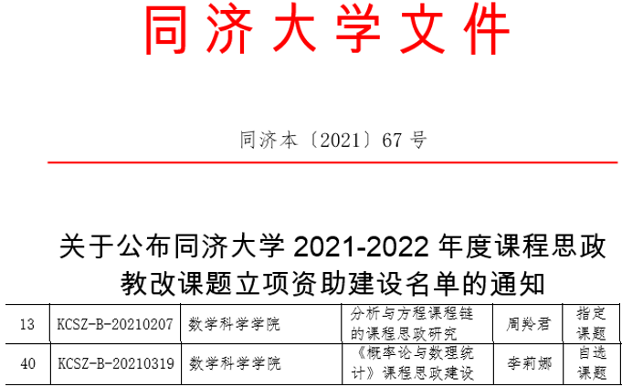 经过一年的扎实耕耘也取得了可喜的成绩。陈素琴团队的“数值分析”获评2021年新葡的京集团35222vip研究生课程思政示范课程,杨筱菡团队的“《概率论与数理统计》思政融合的教学案例设计”获得高等学校大学数学教学研究与发展中心2021年教改立项,周羚君团队的“分析与方程课程链的课程思政研究”、李莉娜团队的“《概率论与数理统计》课程思政建设”获批新葡的京集团35222vip2021-2022年度课程思政教改项目, 吴昊团队的“优化顶层设计,促进数学类研究生专业能力与价值认同协调发展”获批2021年新葡的京集团35222vip研究生课程思政研究项目。