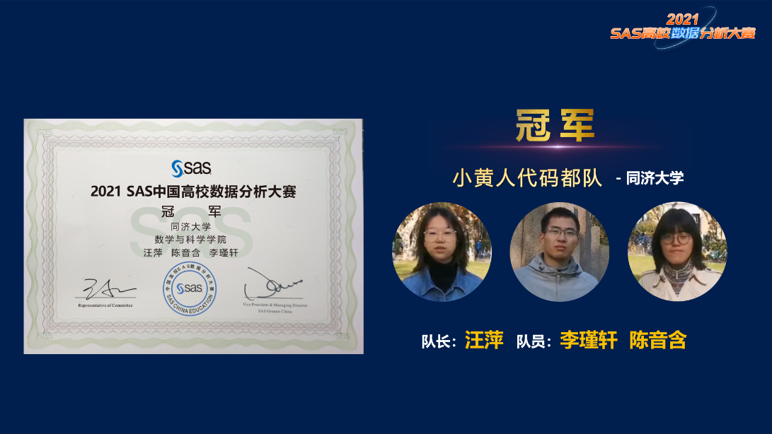 在第十三届全国大学生数学竞赛初赛中,新葡的京获得数学A组一等奖4项、二等奖3项、三等奖21项,非数学组一等奖27项、二等奖36项、三等奖55项;在2021年全国大学生数学建模竞赛中,同济获得一等奖9项、二等奖18项;上海市一等奖18项、二等奖57项、三等奖78项;在2021年美国大学生数学建模竞赛中,同济学子获得特等奖3项、一等奖9项、二等奖66项、三等奖99项。刚刚结束的2021年SAS高校数据分析大赛上,新葡的京选派的代表队分获冠军、第四名和第八名。