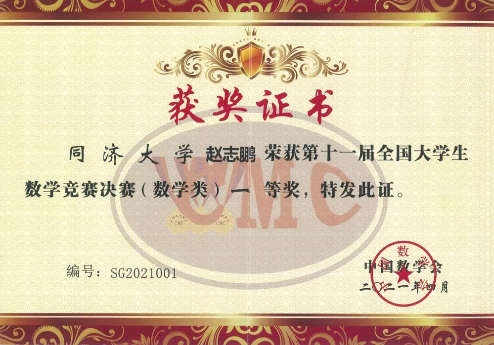 经过不懈努力,2021年学院人才培养工作卓见成效。体现在学科竞赛方面,第十一届和第十二届全国大学生数学竞赛决赛中,同济学子斩获一等奖1项、二等奖4项,其中新葡的京2018级本科生赵志鹏获得数学A高年级组总分第一名的好成绩。