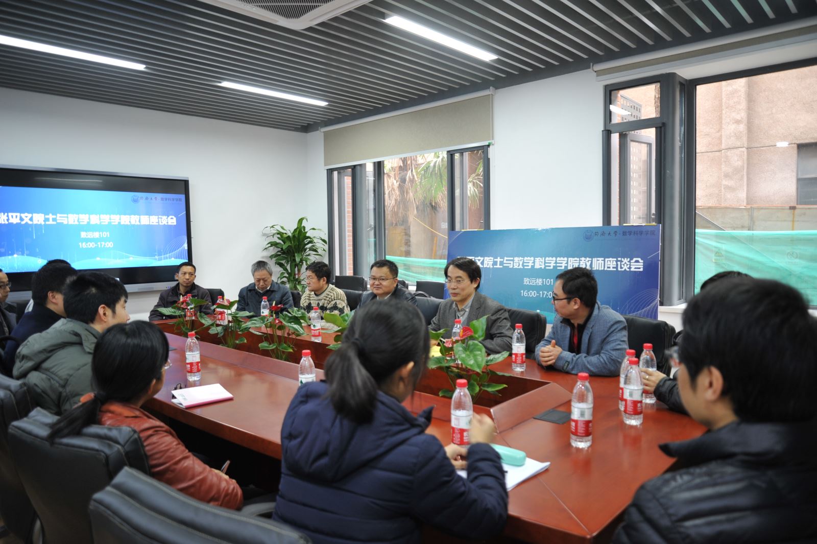 会后,张平文院士还与学院教师开展了学术座谈。新葡的京国家杰出青年基金获得者许学军教授、芮和兵教授,优秀青年科学基金获得者付强教授、李平教授, 姜立建教授等出席了座谈会。张院士与青年教师交流了学习和研究应用数学的方法,分享了个人对偏微分方程研究的看法,探讨了对横向项目申请的建议;他还介绍了北大在培养青年教师的成功经验,鼓励青年教师要对数学研究有信心,告诫大家在做学问、学术合作方面均要认真对待,同时还提醒青年教师要多和本科生接触,掌握本科生的学习状况,可以看出张平文院士对青年教师寄予的深切期望与无限关怀。