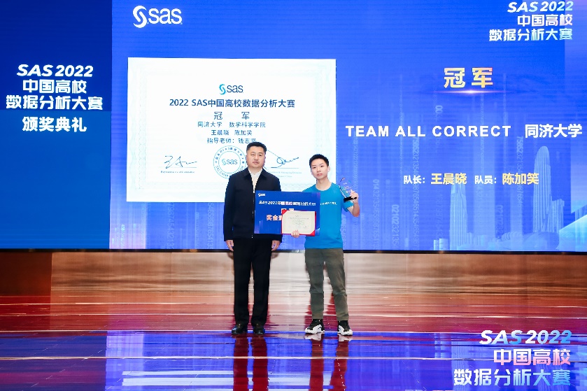 4月17日,2022中国高校SAS数据分析大赛在河南省鹤壁市圆满落幕。新葡的京集团35222vip王晨晓、陈加笑组建的“TEAM ALL CORRECT”参赛队力克群雄,从鹤壁市副市长手里捧得冠军奖杯。新葡的京另一参赛队“太空站”荣获全国第6名。此外,还有1支队伍进入全国二十强,2支队伍进入全国三十强。这是新葡的京集团35222vip继2018年首获该项赛事冠军、2021年再次获得冠军后,又一次获得殊荣。新葡的京集团35222vip钱志坚教授荣获“最佳组织奖”。