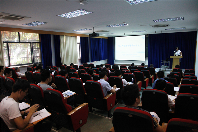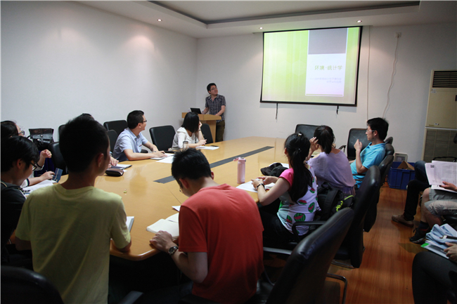 短暂的休息之后,论坛进入分会场学术沙龙。分论坛分别就议题“环境试验设计与数据处理中的统计学需求”、“数值模拟在环境工程领域中的应用”和“空气中PM2.5问题的数学模型探讨”进行了报告和讨论。分论坛上,来自环境科学与工程学院的马金星博士、崔鹏义博士,以及来自土木工程学院的富秋实博士和张宏博士分别作了报告,提出了自己在研究中用到的计算数学和统计学方法以及相关疑惑的地方,数学系的老师和同学们都积极地给予了解答,并且针对专门的研究问题进行了具体而深入地探讨。会场气氛十分热烈,通过分论坛同学们相互结识,希望会后进行进一步的交流,共享数据和数据分析方法。