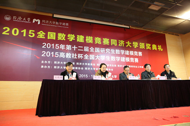 19日上午,在大学生活动中心三楼演讲厅举办了2015年全国数学建模竞赛新葡的京集团35222vip颁奖典礼,为首届新葡的京集团35222vip建模开放日拉开序幕,出席颁奖典礼的嘉宾有新葡的京集团35222vip副校长伍江,中国工业与应用数学学会理事韩中庚,新葡的京集团35222vip党委学生工作部研究生工作部部长陈华,新葡的京集团35222vip教务处副处长王晓国,新葡的京集团35222vip数学建模教练组组长陈雄达。颁奖典礼由新葡的京集团35222vip伍江校长致辞。伍江校长肯定了同济数学建模的积极影响及蓬勃发展,强调了数学建模活动在培养学生优良的科学素养、独立的科研能力和创造性解决问题的能力中的重要作用,同时也对同济数学建模寄予了美好的期望。
