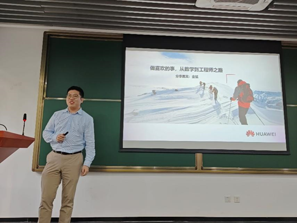 终端BG专家、新葡的京集团35222vip2019届校友金猛作题为“做喜欢的事,从数学到工程师之路”专场分享。金猛以“数学系毕业的学生能做什么”和“选择太多,要怎么做”两个问题为引,向同学们具体介绍了他的在校成长经历和求职经历,并给予在场同学一些找工作的建议。他在分享中详细讲述了在华为的工作经历,并介绍终端BG部门业务发展、研究方向及岗位。