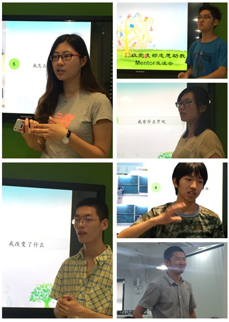 接着,助教和同学们就“我得到了什么”、“我有什么变化”、“我改变了什么”“我遇到了什么困难”以及“我如何做得更好”五个方面展开了讨论,对已经开展两周的工作做了总结与回顾。研究生党员们踊跃发言,应用统计方向的赵瑜说:“助教和学生在某种意义上是平等的,在活动过程中,我们自己也收获到了很多,比如有一次和学弟学妹们一起讨论基础性的问题的时候,让我对自己做科研中的问题有了新的认识和理解”。党员们纷纷说通过此次活动提高了自己的表达能力,借此机会复习过去的知识,调整了自己的作息时间,充实了自己等等。学员们也纷纷提出来自己的想法,比如活动的制度更灵活一点,学员应该提前将自己的问题进行汇总等等。