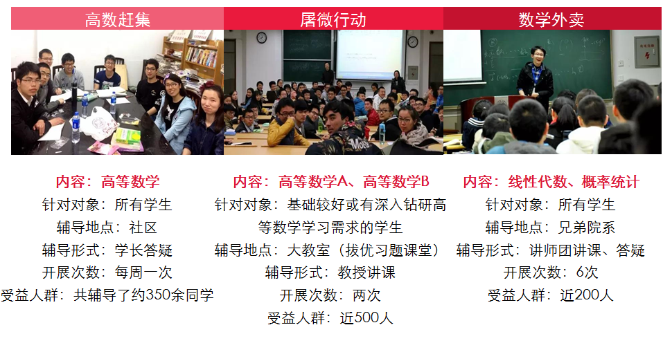 除此之外,同济新葡的京集团35222vip还陆续突出了“高数赶集”“屠微行动”等一系列助学活动,组织教研组的年轻老师、研究生助教和本科生“学霸”等,义务为在数学学习上有困难的学生答疑。其中一个名为“高数共学社群”的组织,目前人气十分火爆,线上活跃的学生达461人,在这个社群,每周五都有来自助学基地的“学霸”组织进行线上答疑,每周日则有助教深入学生社区进行线下辅导。