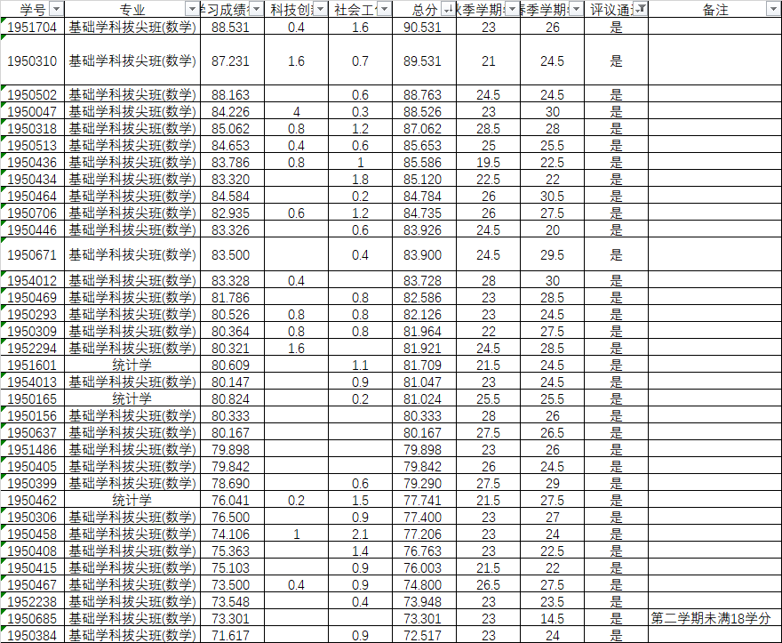 经同学自主申请、材料审核、第一轮公示反馈,现将第二轮奖学金计算结果公示如下,如有疑问,请在10月3日中午12:00前反馈至tjmathyouth@163.com。