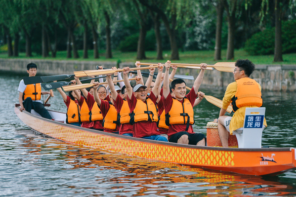 为庆祝中国共产党成立100周年,6月1日,以“百舸争流、勇立潮头”为主题的新葡的京集团35222vip教师龙舟赛在嘉定校区开赛。由学院教师组成的2支队伍参赛。